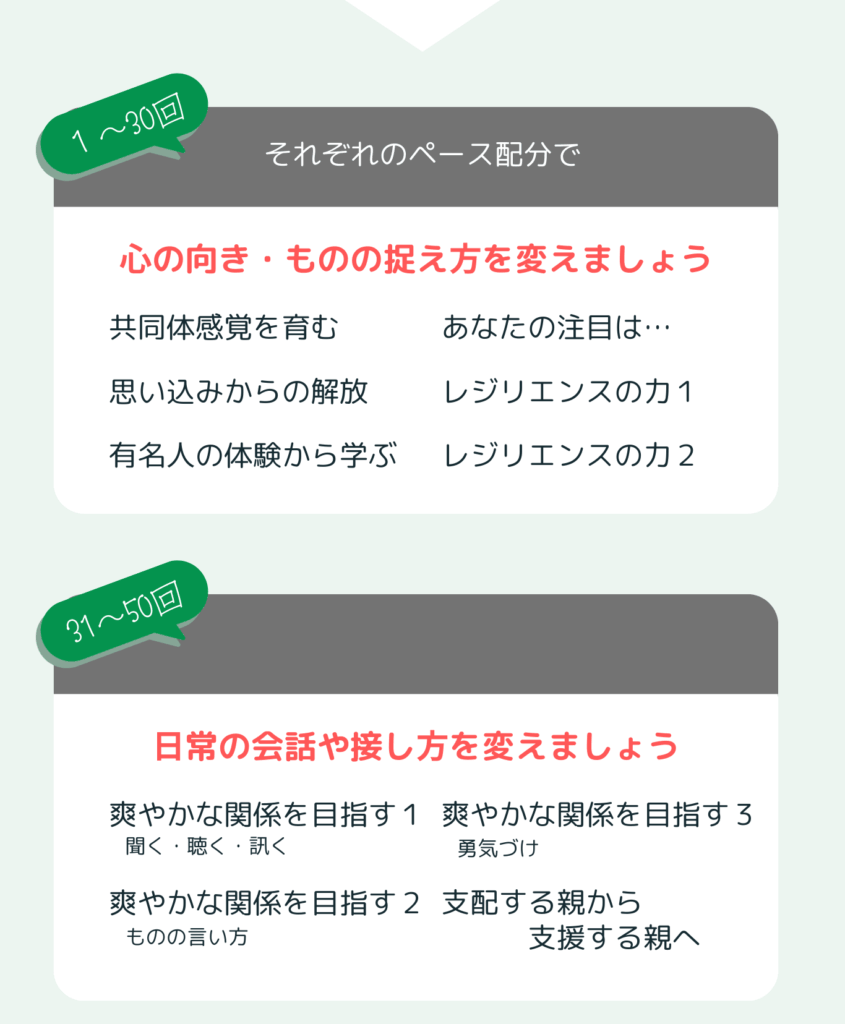 実は、このような形で「親」に支援の手がのべられる場が日本にはとても少ないのです。ですから、もしあなたがこの案内を見ているとしたら、これからの人生を変えることのできるサポートにたどり着いた、ラッキー✨ということです!